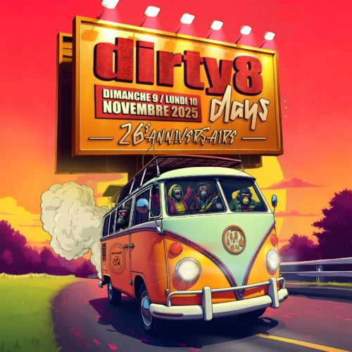 En 2025, L’association Dirty 8 fête ses 26 ans d’existence et ses 21 ans dans les murs de la Maison Bleue ! Le temps de quelques jours exceptionnels en novembre pour fêter comme il se doit cet anniversaire : concerts, soirée covers, du karaoké et d’autres surprises !