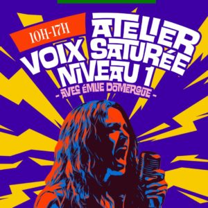 DIMANCHE 1ER FÉVRIER 2026 ; ÉMILIE DOMERGUE ATELIER VOIX SATURÉE NIV.1 ; 10h-17h 40 € / personne (repas non inclus) De la voix parlée à la voix saturée La voix saturée a depuis quelques années maintenant, réellement suscité l’intérêt et la curiosité des chanteurs et musiciens des musiques actuelles. On en reconnait aujourd’hui sa particularité […]
